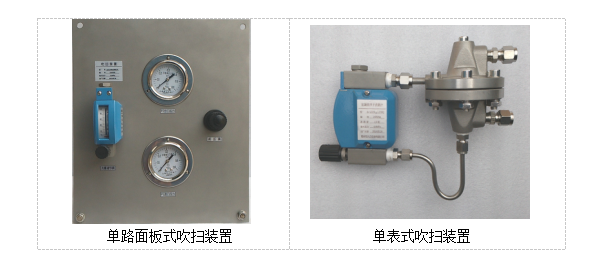 面板式双路吹扫装置采用本公司的金属管浮子流量计或玻璃转子流量计与恒流阀配合,在系统中实现流量测量并确保流量恒定输出。