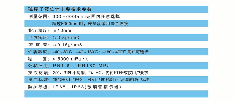 磁浮子液位计是基于磁耦合原理的直读式液位仪表,又被称为磁翻柱液位计或磁翻板液位计。适用于敞开或密闭容器内的液位或界位的测量。根据现行《石油化工储运系统罐区设计规范》SH/T 3007 第6.3.2条"压力储罐液位测量应设一套远传仪表和一套就地指示仪表,就地指示仪表不应选用玻璃板液位计。"的要求,磁浮子液位计已经替代玻璃板液位计,成为液位就地指示仪表的理想选择。