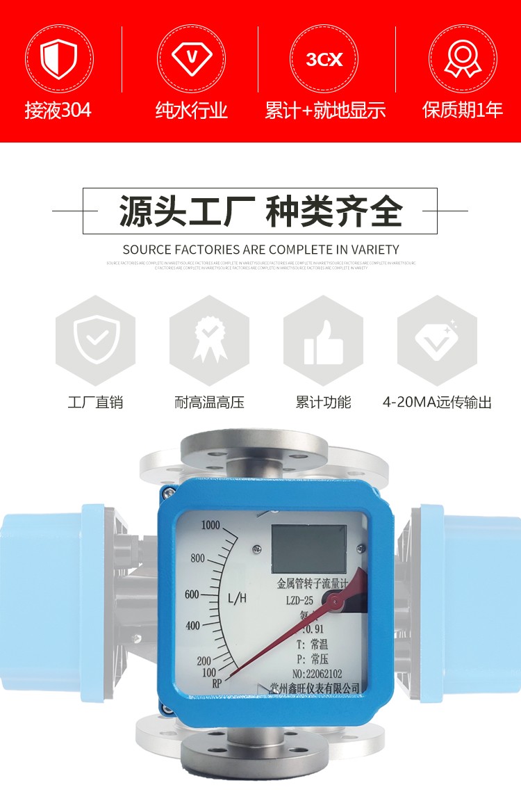 LZD-150/1/RR1/A/M9/JSE/Z远传型金属管浮子流量计结构筒单、工作可靠、准确度高、适用范围广。广泛应用于国防、化工、石油、冶金、电力、环保、医药等领域的液体、气体流量的测量和控制。