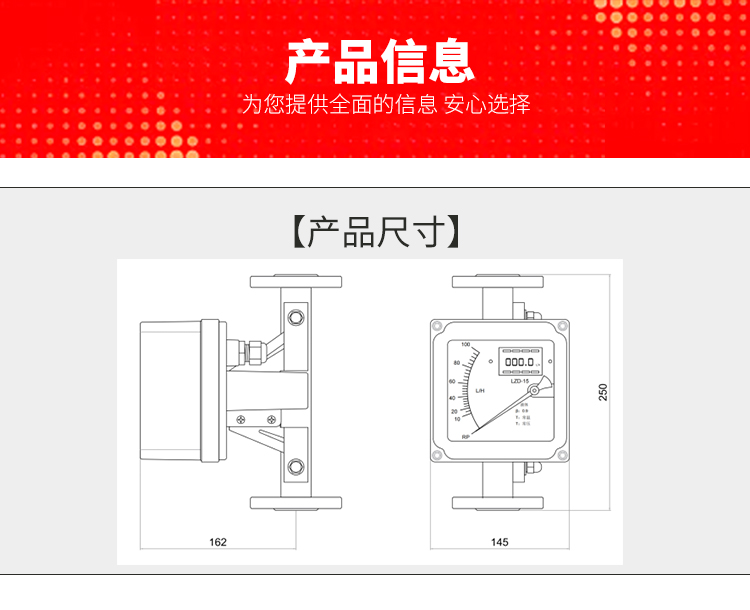 LZD-50/RR1/M9/B1远传型金属管浮子流量计适用于小口径和低流速介质 流量测量;工作可靠,维护量小,寿命长;金属管浮子流量计对于直管段要求不高 ;较宽的流量比10:1;双行大液晶显示,可选现场瞬时/累计流量显示,可带背光 单轴灵敏指示;非接触磁耦合传动;金属管浮子流量计全金属结构,适于高温、高 压和强腐蚀性介质;可用于易燃、易爆危险场合;可选二线制、电池、交流供电方式;多参数标定功能;金属管浮子流量计带有数据恢复,数据备份及掉电保护功能.