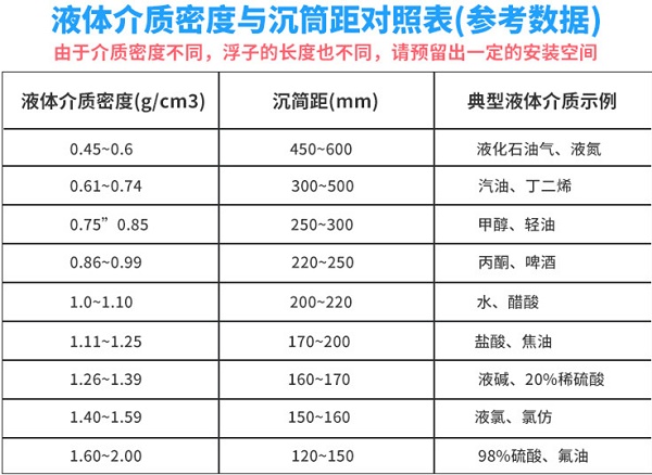 7.介质粘度:≤0.4PaS,对于粘度大的介质或温度低时易结品的介质,可根据用用户要求选 用加热型夹套式液位汁。